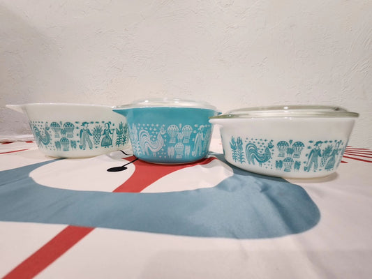 Pyrex Blue Butterprint Casserole Dishes with Lids